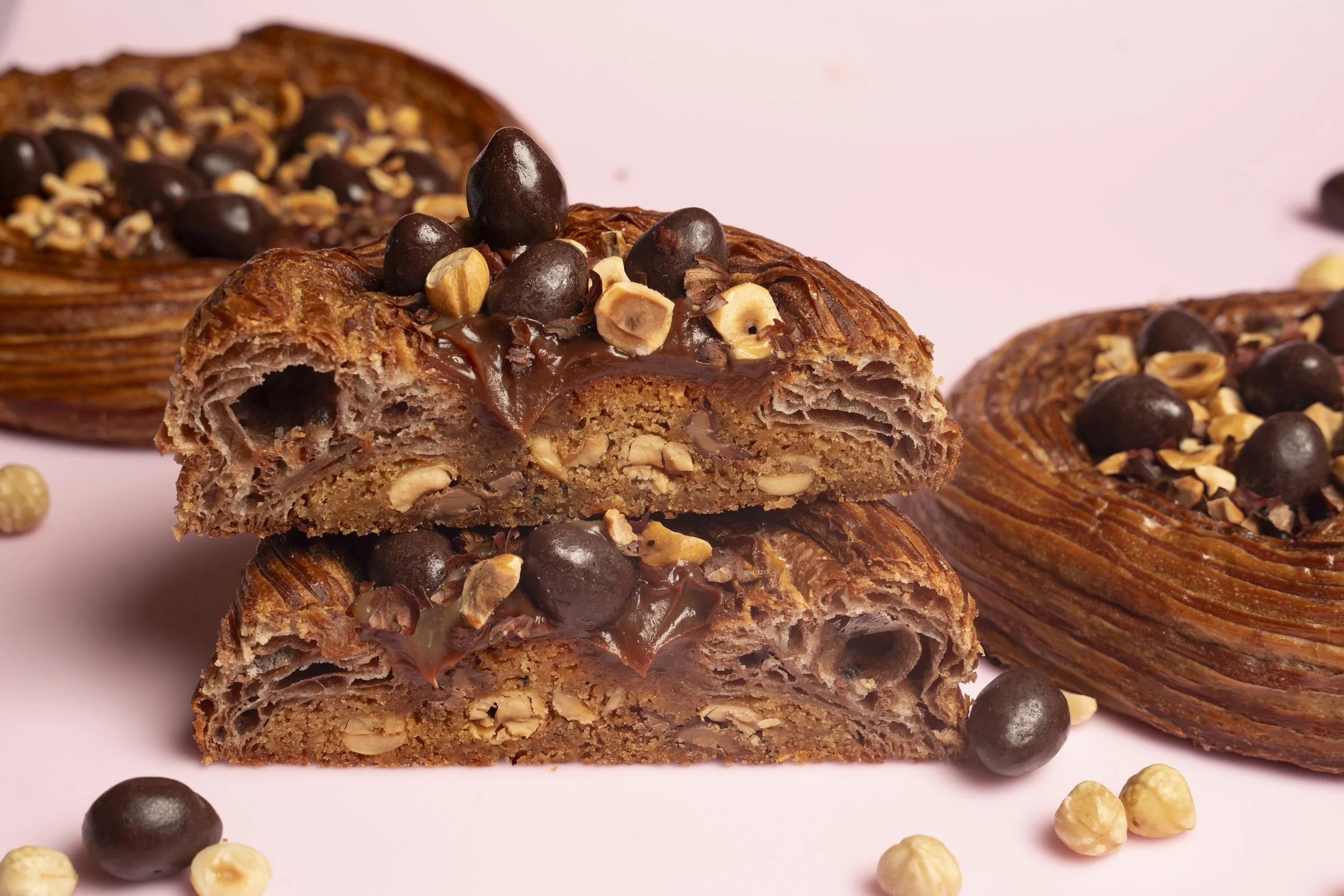 Imaginez une pâte à croissant ultra feuilletée, striée au chocolat et à la noisette, garnie d’un cookie fondant, de caramel coulant, et décorée de petits œufs craquants pour une touche festive. À partager (ou pas), c’est le moment parfait pour fondre de plaisir… ensemble ! 🐣🍫