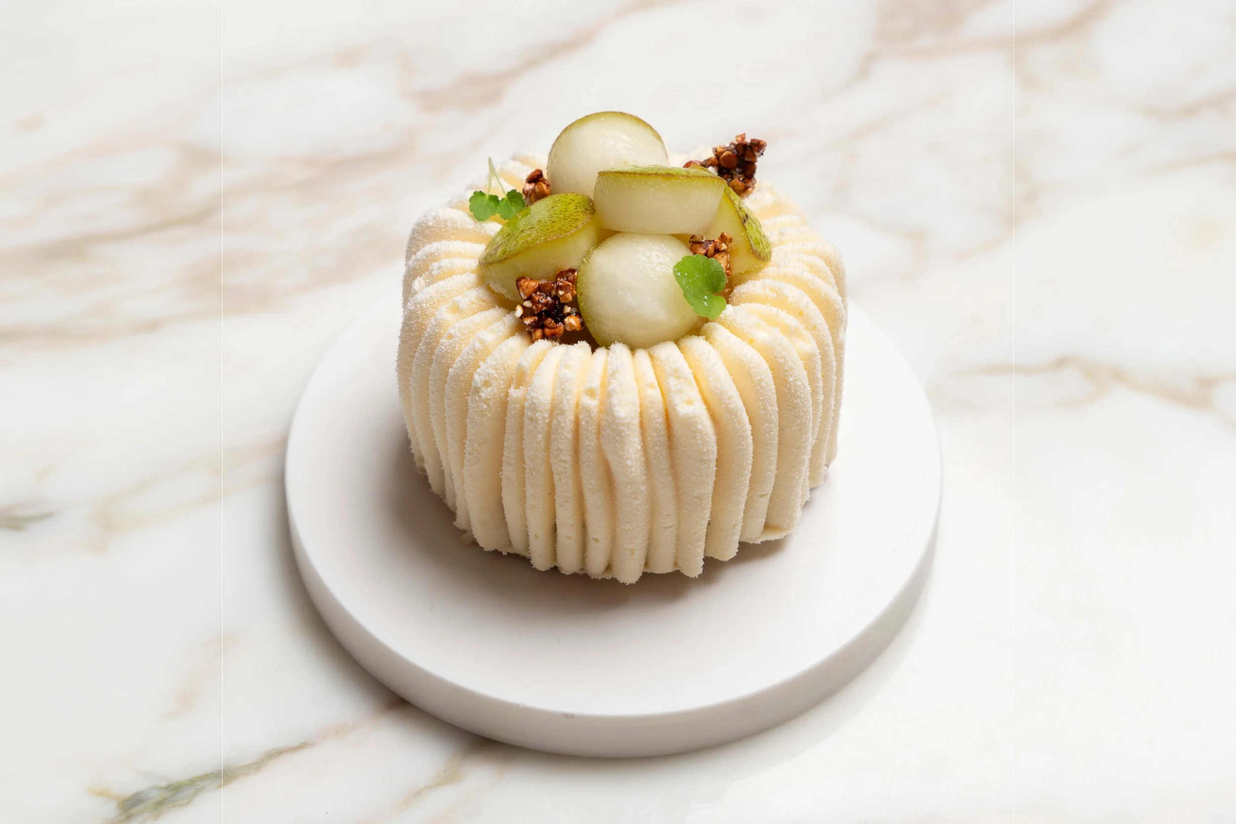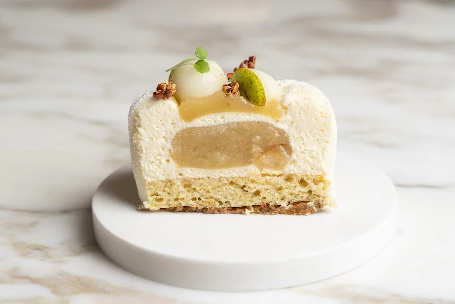 Un dessert tout en fraîcheur et en équilibre, idéal pour les amateurs de saveurs fruitées et légères. Le Poirier associe la douceur de la poire à une pointe acidulée de yuzu, sublimée par la rondeur du sarrasin. Sa mousse légère, son gel délicat et ses éclats croquants en font une création élégante et gourmande, parfaite pour toutes les occasions. 🍐✨